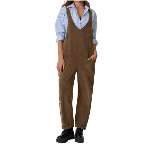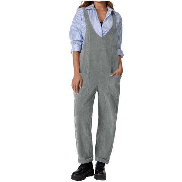 Casual Suspender Trousers Polar Fleece Tooling Style Jumpsuit