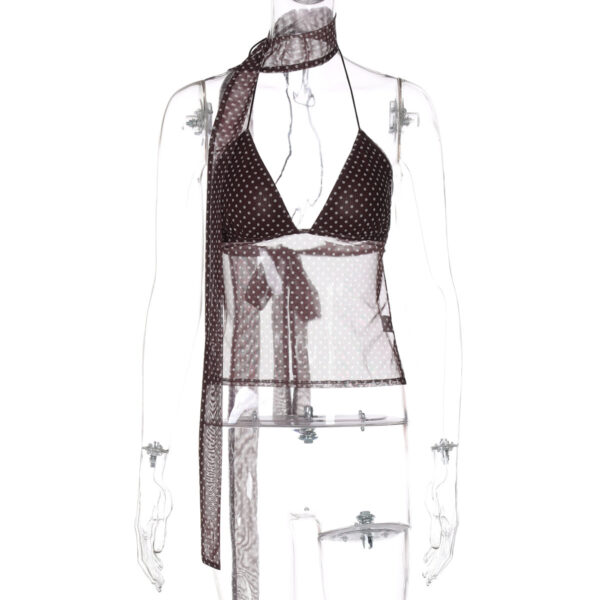 Polka Dot Deep V Lace-up Small Sling Backless Tube Top Vest