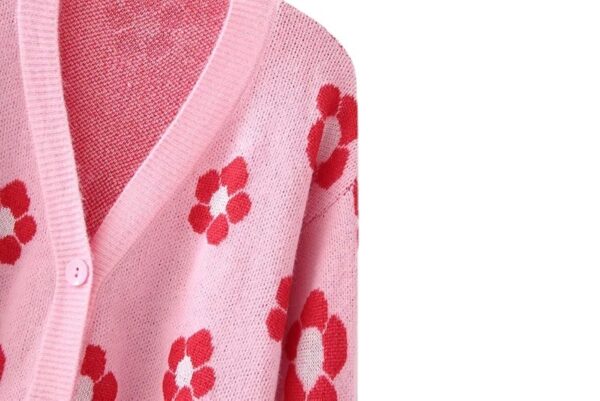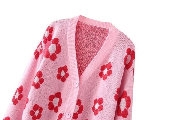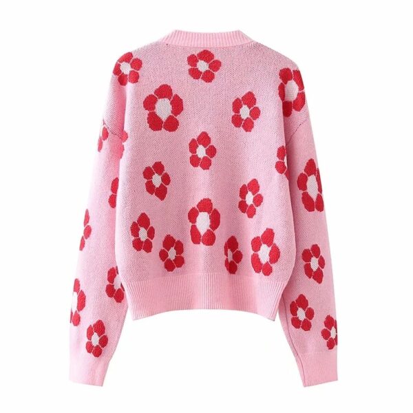 V-neck Knitted Floral Jacquard Sweater
