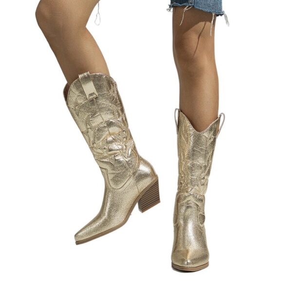 Women’s Embroidery Fashionable Chunky Heel Middle Boots