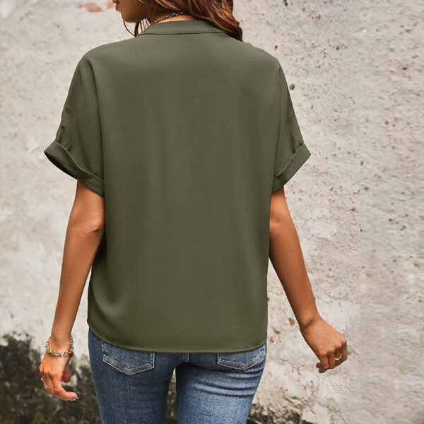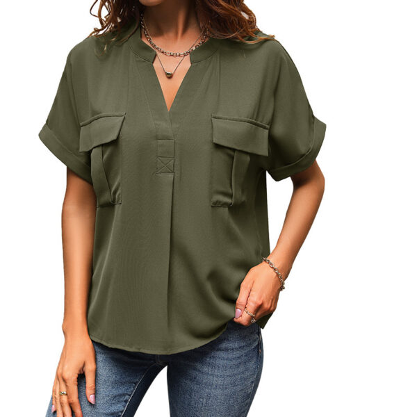 Women’s European And American Solid Color And V-neck Pocket Elegant Shirt